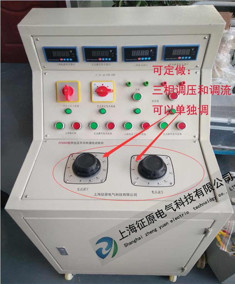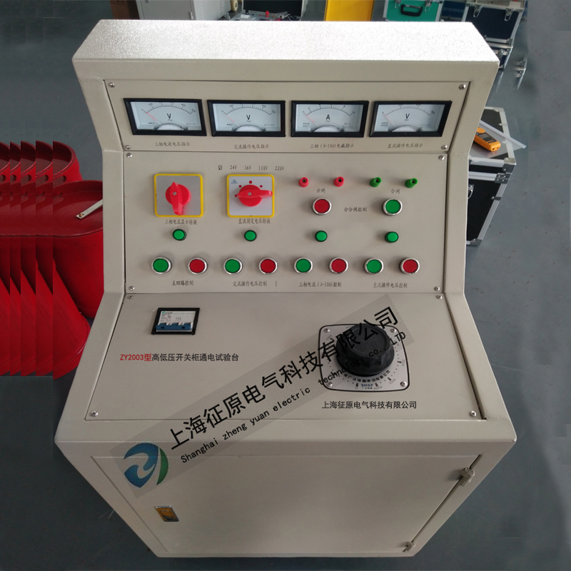 ZY2003型高低壓開關(guān)柜通電試驗臺用于高低壓開關(guān)柜生產(chǎn)廠家對所生產(chǎn)的高低壓開關(guān)柜進行出廠前的各項通電試驗。它能提供各種交、直流電源,便于對開關(guān)柜的檢測,提高工作效率。