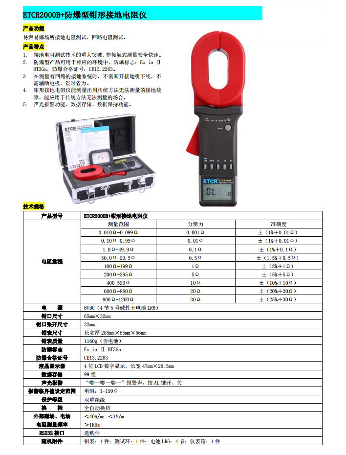 ETCR2000型鉗形接地電阻測(cè)試儀是傳統(tǒng)接地電阻測(cè)量技術(shù)的重大突破,廣泛應(yīng)用于電力、電信、氣象、油田、建筑及工業(yè)電氣設(shè)備的接地電阻測(cè)量。